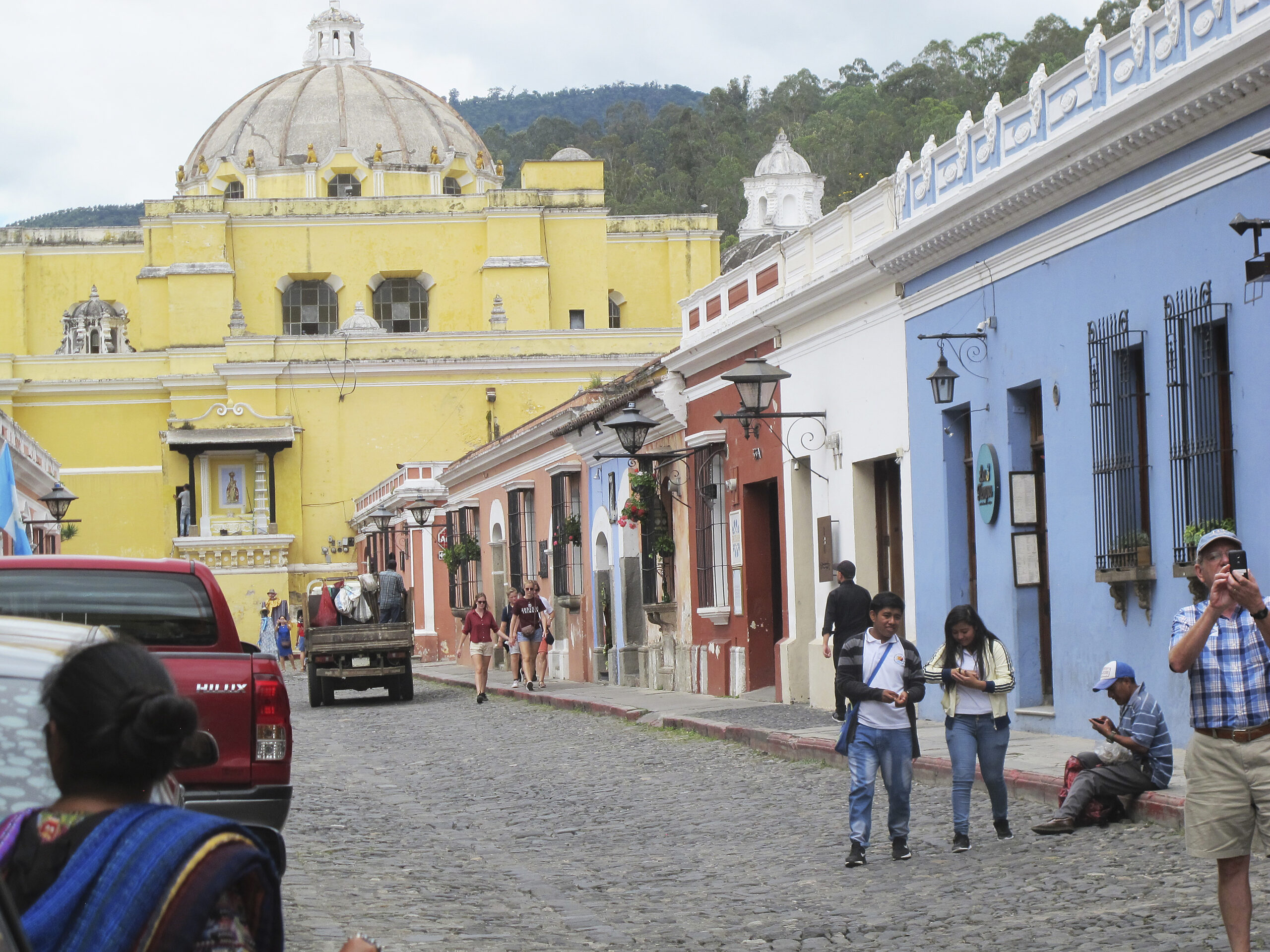 On the outskirts of Antigua, we change from our bus to a shuttle van. No large vehicles are allowed on historic Antigua’s narrow, cobbled streets.